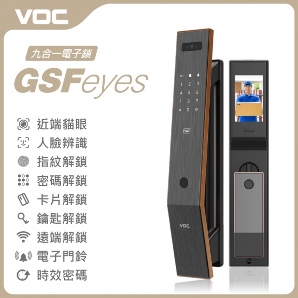 VOC SOLO GSF Eyes 近端貓眼|人臉|指紋|卡片|密碼|鑰匙|遠端|門鈴|多功能時效密碼 九合一電子鎖